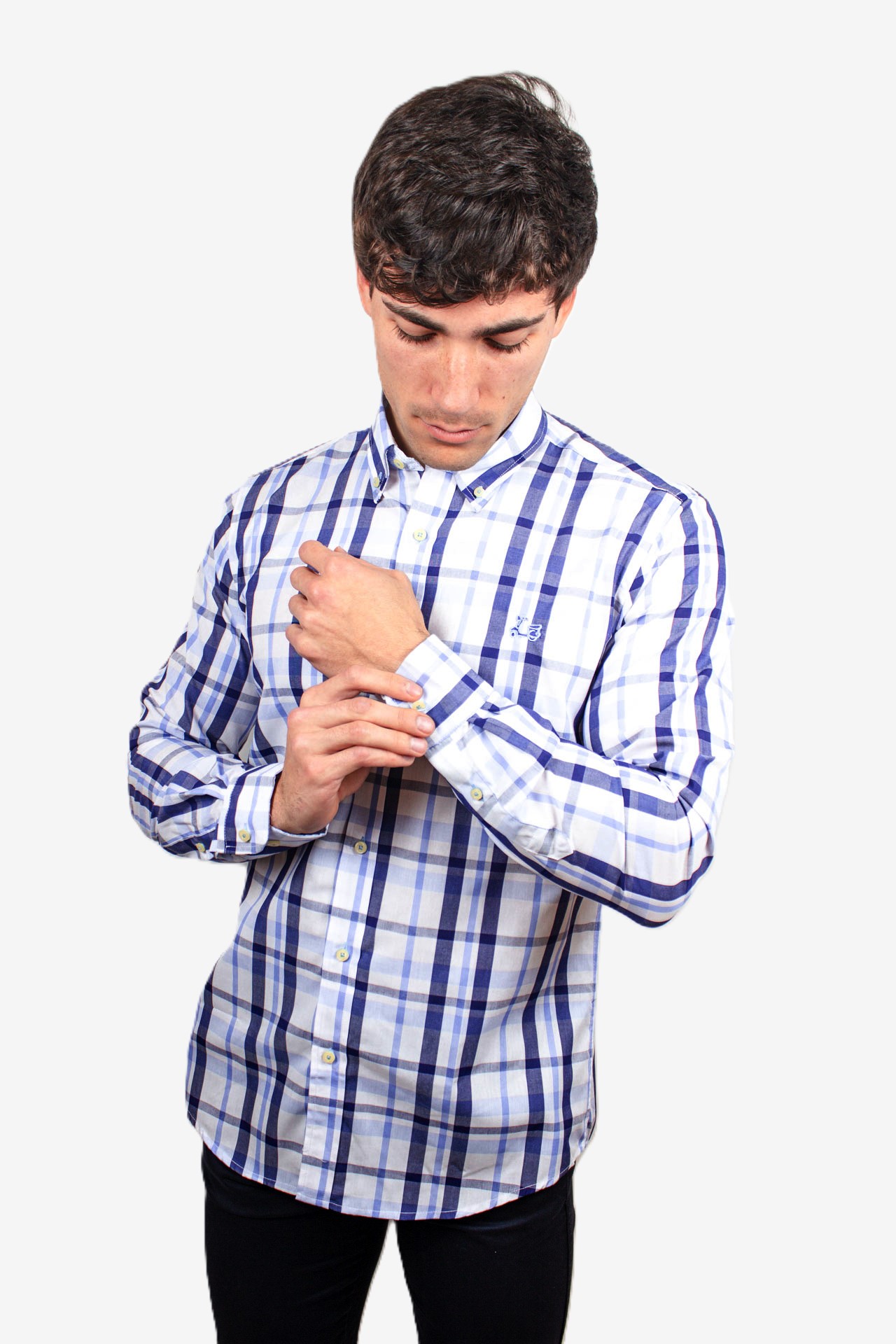 Camisa estilo a cuadros azules. Compuesta de mezcla de algodón de corte Regular fit.