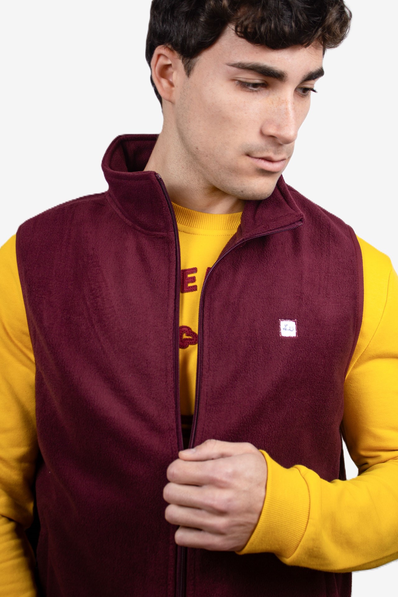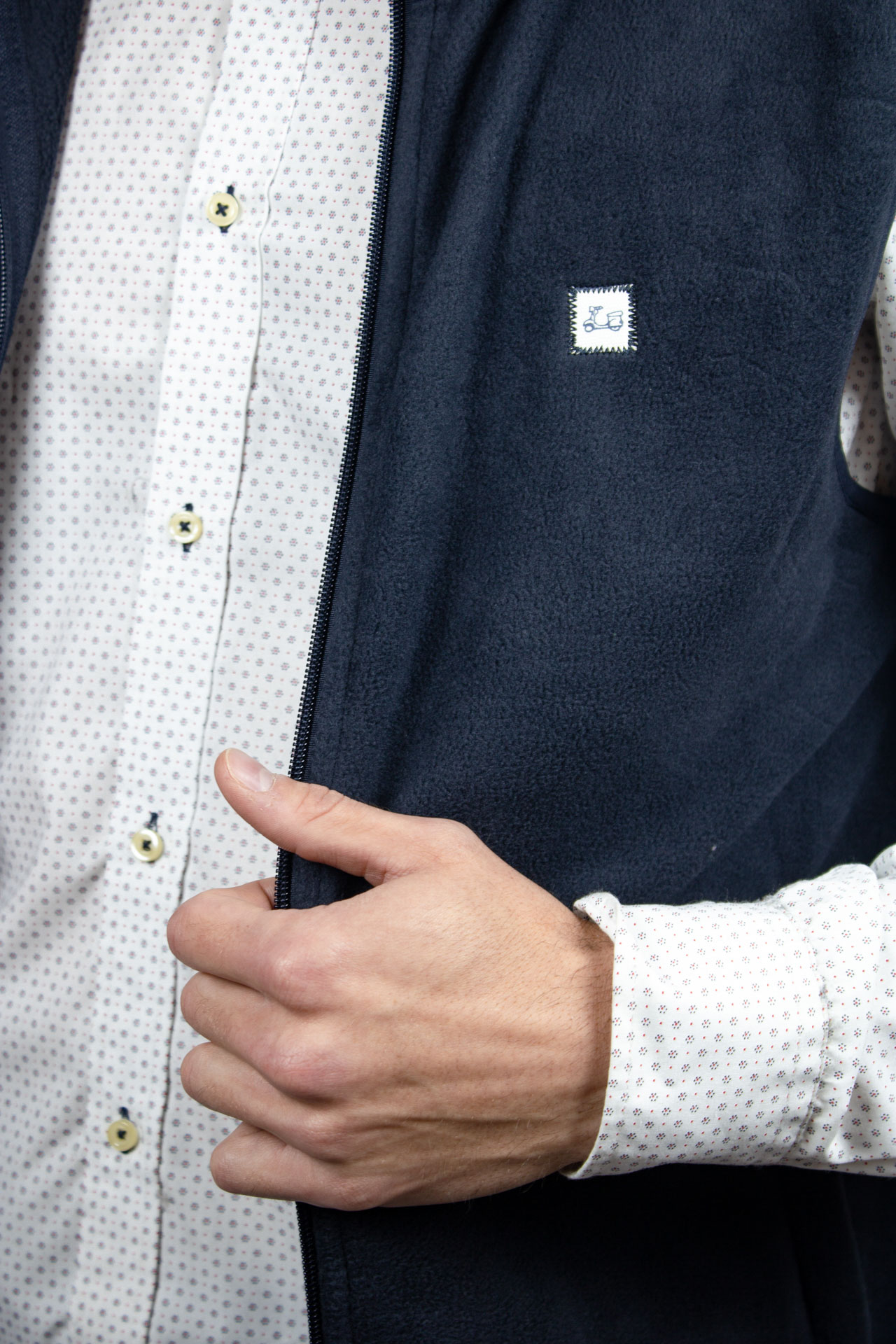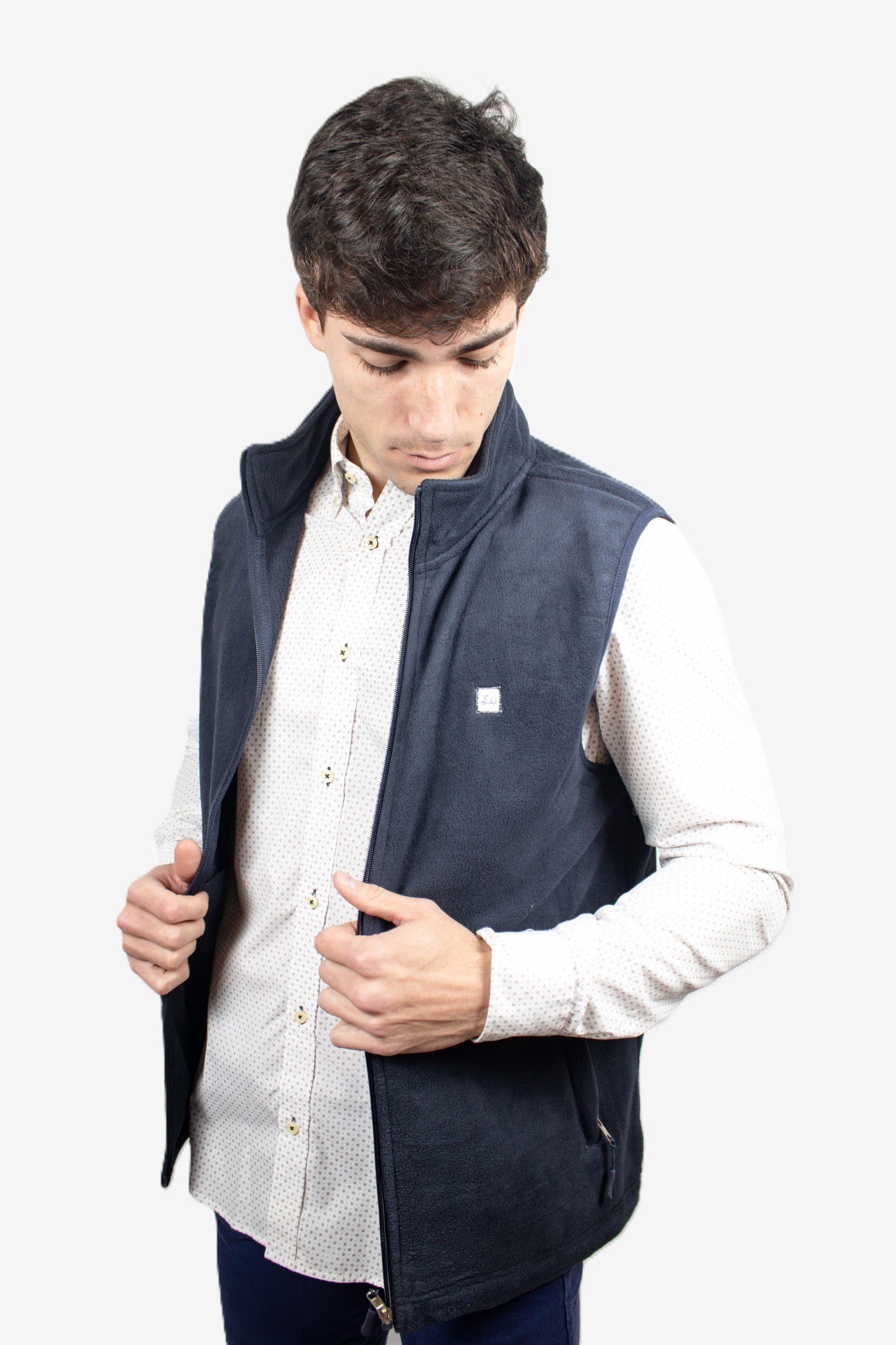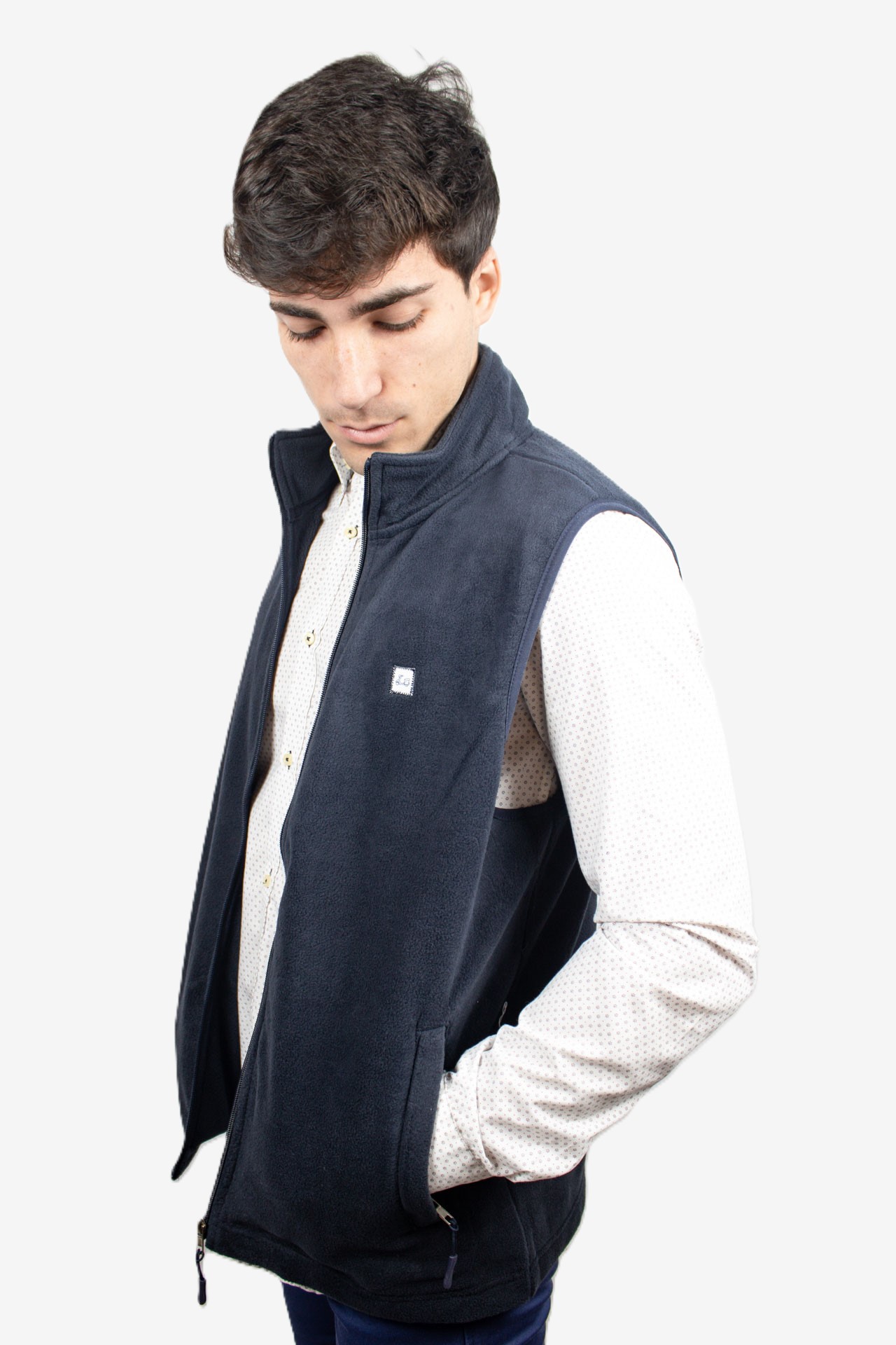 Chaleco cárdigan de cremallera con cuello subido y manga sisa. Tejido polar. Bolsillos laterales con cierre de cremallera. Con etiqueta logo Ridebike en el pecho, lateral izquierdo.