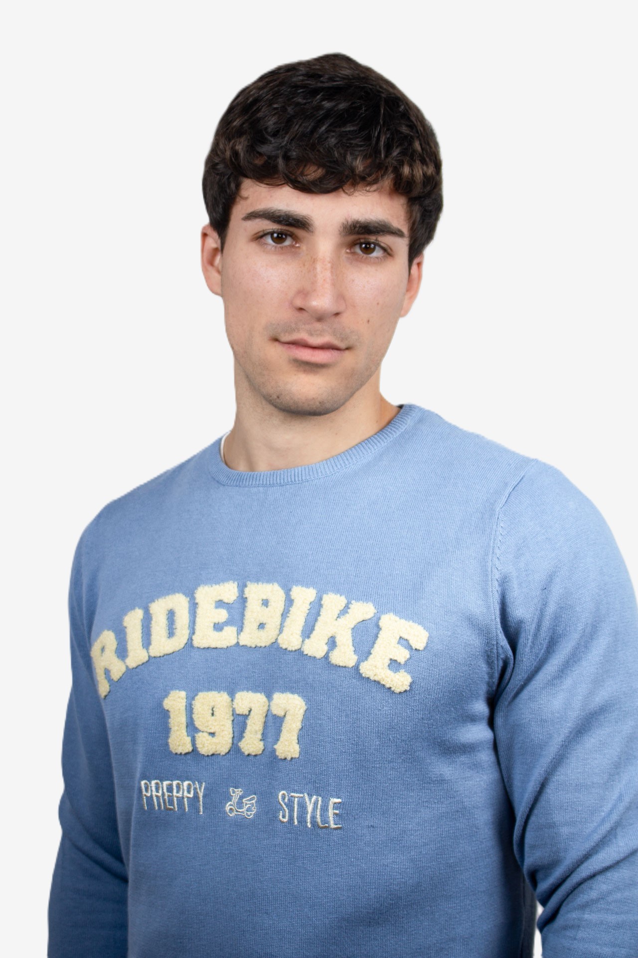 Jersey con logo Ridebike en pecho. Confeccionado con 100% Algodón. Cuenta con cuello redondo y bordado rizo de toalla de diseño corporativo de color, combinado con el jersey, en el torso. Bordado texto “Ridebike 1977 Pretty Style”