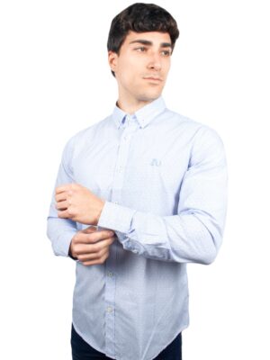 Polo de rayas combinadas. Confeccionado con algodón 100%. Bajo con aberturas laterales. Cierre frontal con botones.